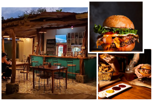 They are an artisanal burger restaurant located just at the entrance to the beautiful Playa Avellanas serving a special burgers menu, with vegetarian, vegan, and gluten-free options, local beers, artisanal wines, cocktails, and homemade desserts.