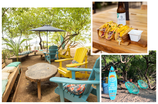 Another beautiful beach restaurant next door to Lola’s. La Purruja specializes in fresh and delicious eats, inspired by local ingredients and Costa Rican preparations. In addition to their bright and flavorful menu, which includes vegetarian and vegan options, they also serve cold beers, cocktails, and organic ice cream.