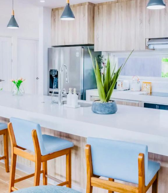 - This beautiful almost 1800 sq feet villa boasts a professional open design with exotic tropical style, giant floor-to-ceiling windows, gourmet kitchen high-end furnishings, air conditioning, and Wi-Fi in every room.